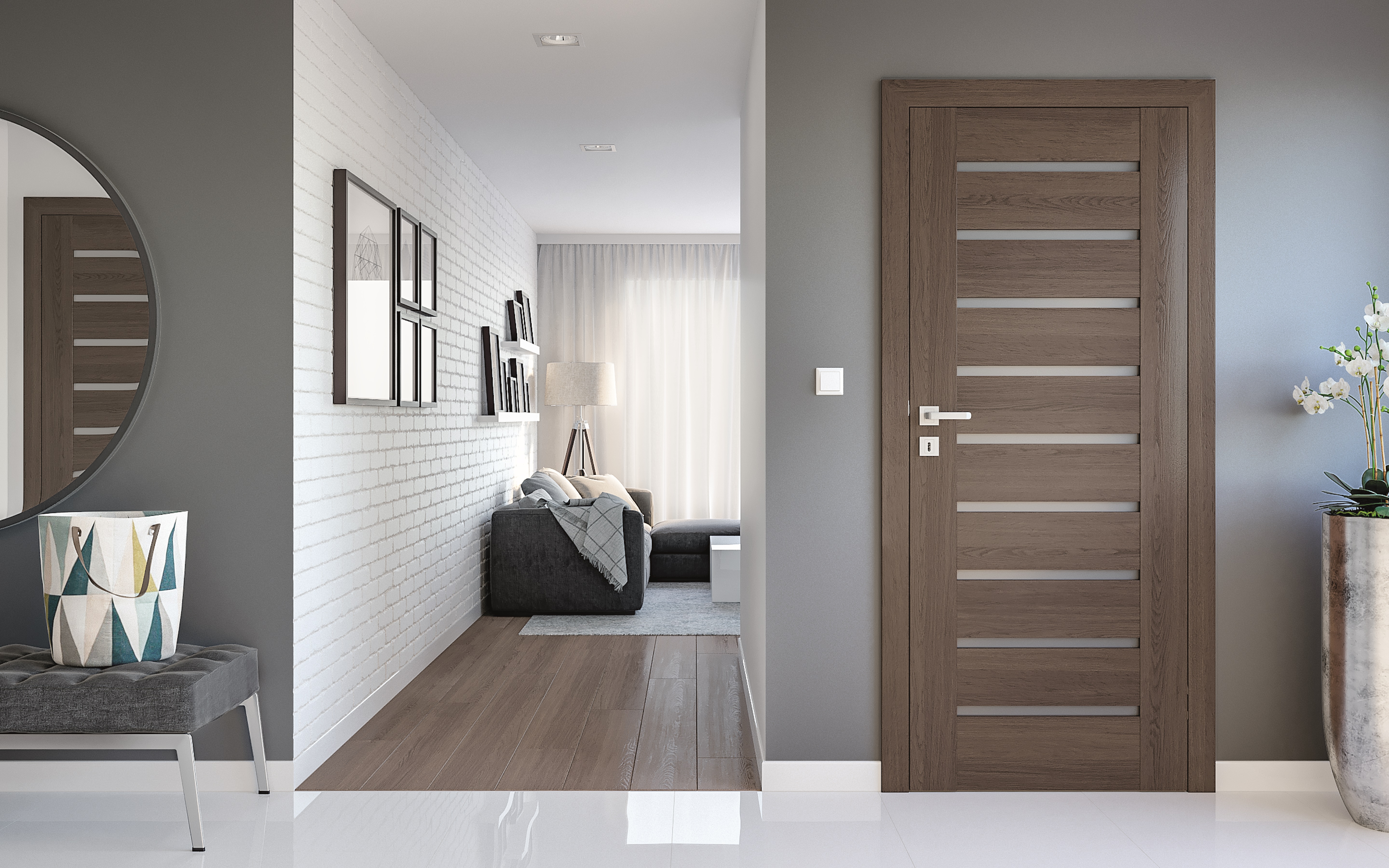 Drzwi wewnętrzne ramiakowe z kolekcji Porta to solidne wykonanie oraz dbałość o każdy detal. Matowa szyba hartowana, bądź płyciny nadają naszym drzwiom efektowny wygląd. Masywna konstrukcja skrzydeł wykonanych zr specjalnej, wielowarstwowej płyty drewnianej oraz bardzo dobrej jakości oklein- dają nam gwarancję wieloletniej trwałości. Drzwi z tej kolekcji doskonale prezentują się zarówno w mieszkaniach klasycznych jak i nowoczesnych.
