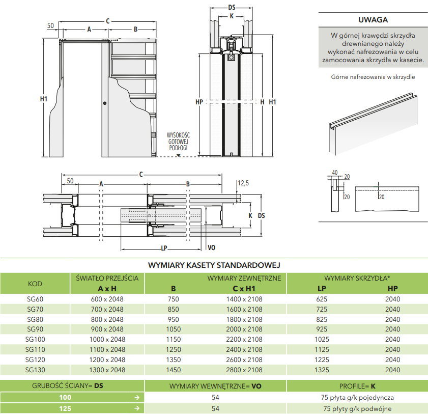 *Wymiary w tabelkach dotyczą drzwi drewnianych